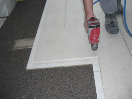Detail Fußbodenverlegung Trockenestrich Detail Fassadensanierung